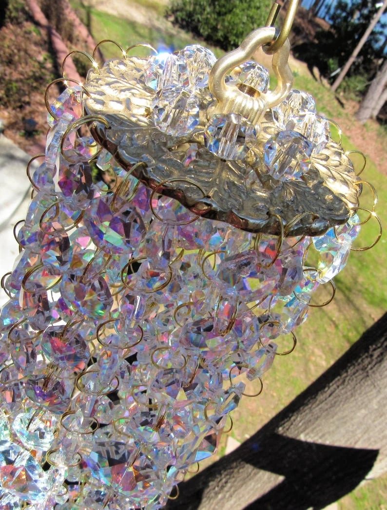 This crystal wind chime is Asfour crystal prisms in clear and AB.