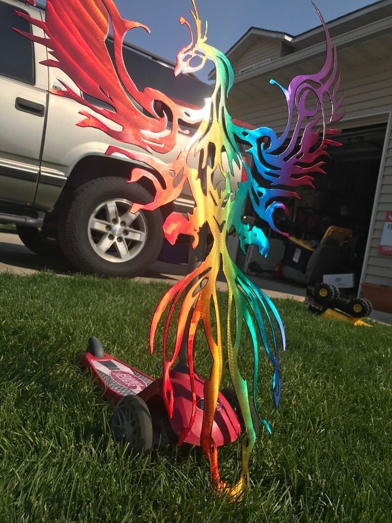 🔥The phoenix reborn in flames. No special lighting is required, but the more light nearby, the brighter it will be in the sun or indoor light.