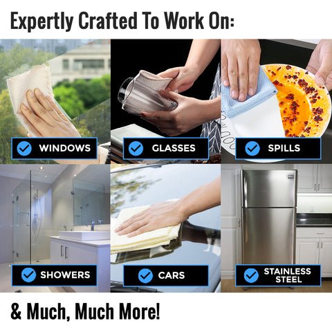 • The NanoScale cloths work on a huge range of things! Including: glass, mirrors, screens, countertops, stainless steep, quartz, car windshields, shower screens, bathrooms, dust & much more!
