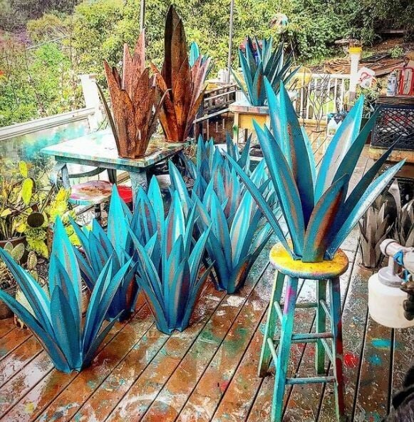 🌿🌵【Eternal metal agave】This is a rust-style metallic agave, made from metal and painted with blue high lights in contrast with its rusty steel style finish creates a very unique juxtaposition